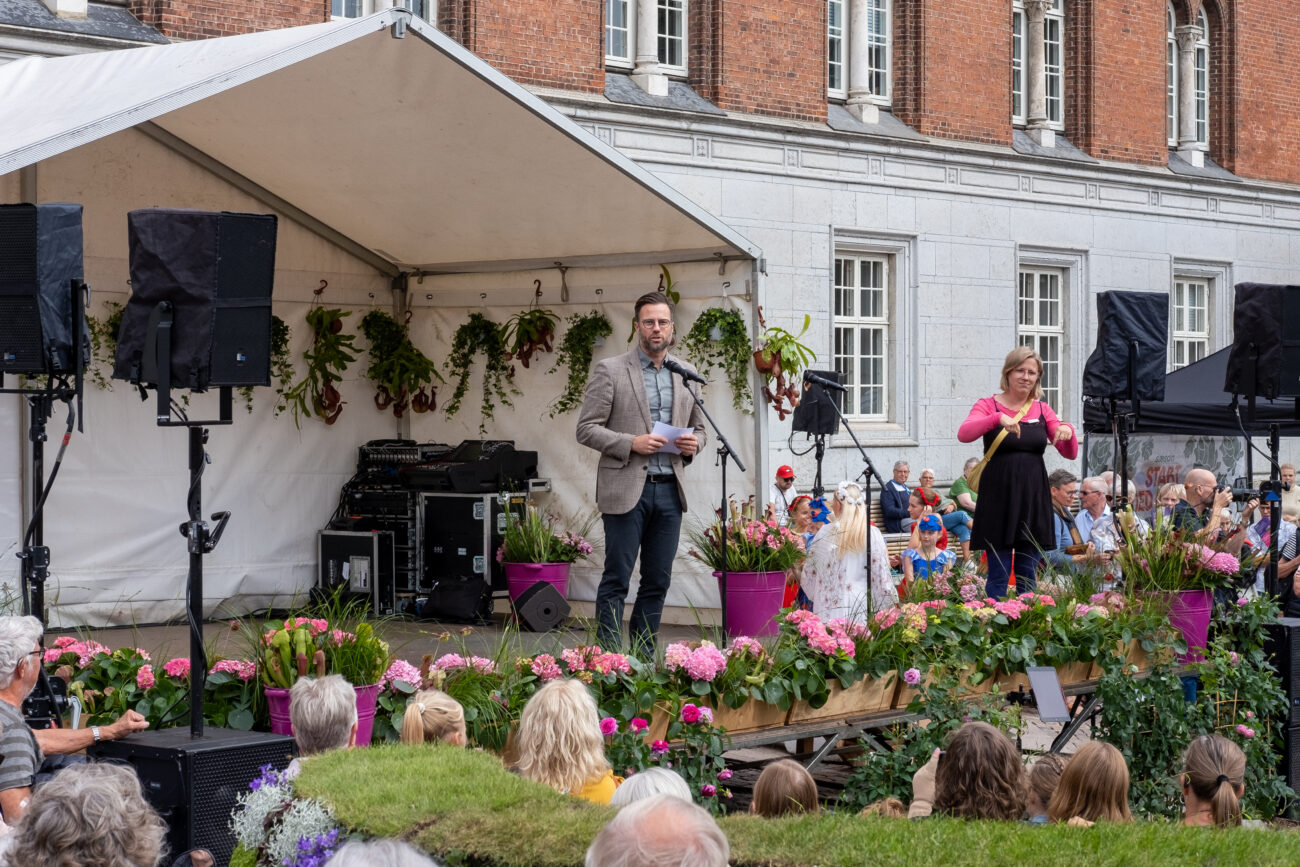 Kronprinsesse Mary indviede officielt den 23. udgave af Odense Blomsterfestival 2022. Under temaet ‘Den eventyrlige have’ byder de fire fortryllende dage på et væld af kreative og smukke blomster- og planteudsmykninger på Flakhaven og rundt omkring i Odense bymidte, men også DM i blomsterkunst, underholdning, inspiration og aktiviteter for de mindste. E. Bøg Madsen Fonden var stolt sponsor.